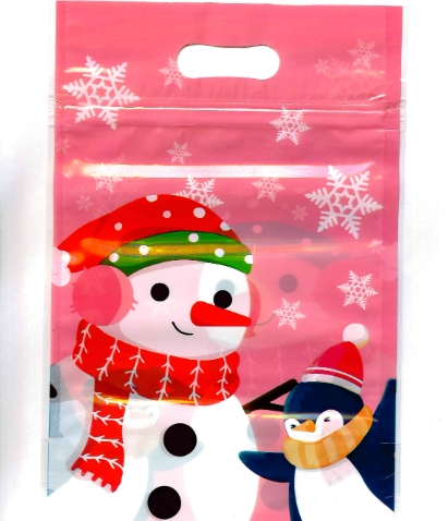 Пакет подарочный НГ 15*23 СНЕГОВИК НА РОЗОВОМ Зип-Лок (10/50)